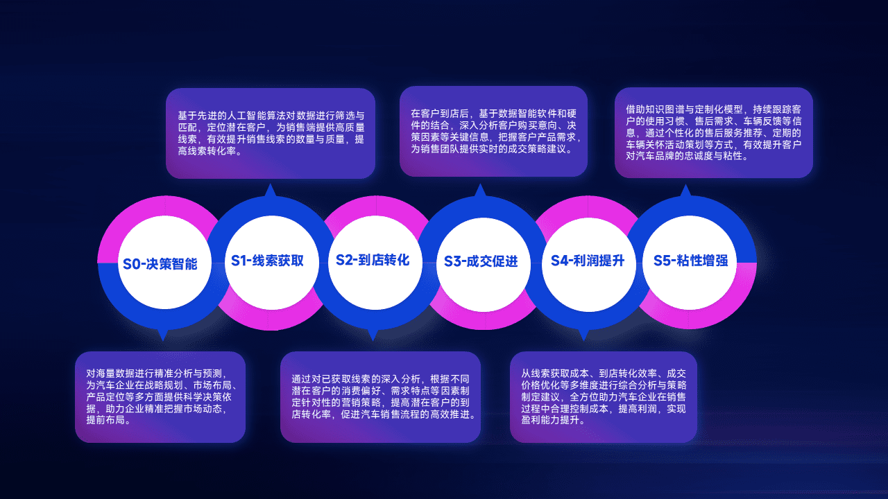 通过拓宽潜在客户来源、、优化线索分配并提高到店转化率,,,,以增强销售效率。。同时,,,利用线索数据不断优化分析模型,,,,有效提升转化率,,,扩大营销影响力。。